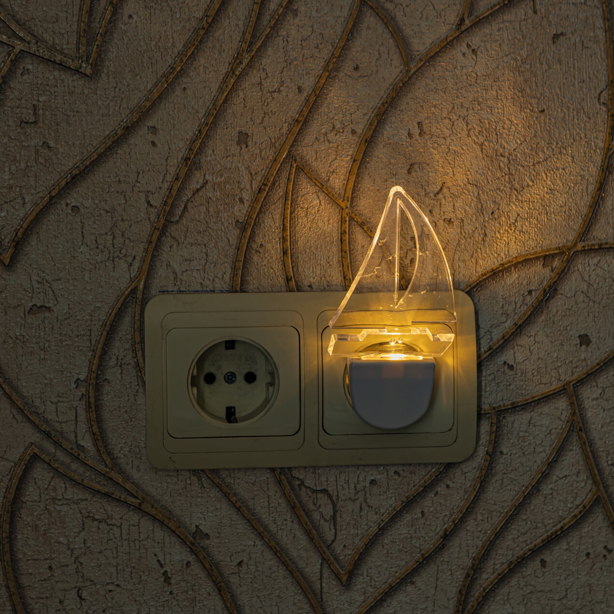 Светильник-ночник детской серии без выключателя предназначен для дополнительной подсветки в помещении. Светодиодый ночник - популярный выбор многих покупателей, компактный и удобный. Светильник подарит атмосферу уюта и настроит на спокойный сон. Модель отлично подойдет в детскую комнату. Цветовая температура 3000 К (теплый белый свет). Корпус прибора изготовлен из пластика, цвет - белый. Ночник выполнен в форме кораблика. Мощность 0,1 Вт. Требуется подключение к сети.
