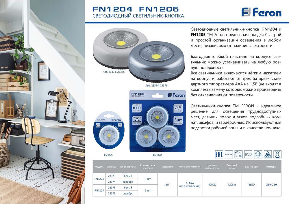 Светильник кнопка 2Вт 120Лм 4000К серебро kamsvet