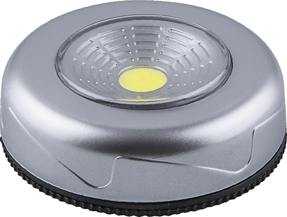 2W Светодиодный светильник-кнопка  (1шт в блистере) 120Lm, 68*18мм, серебро.