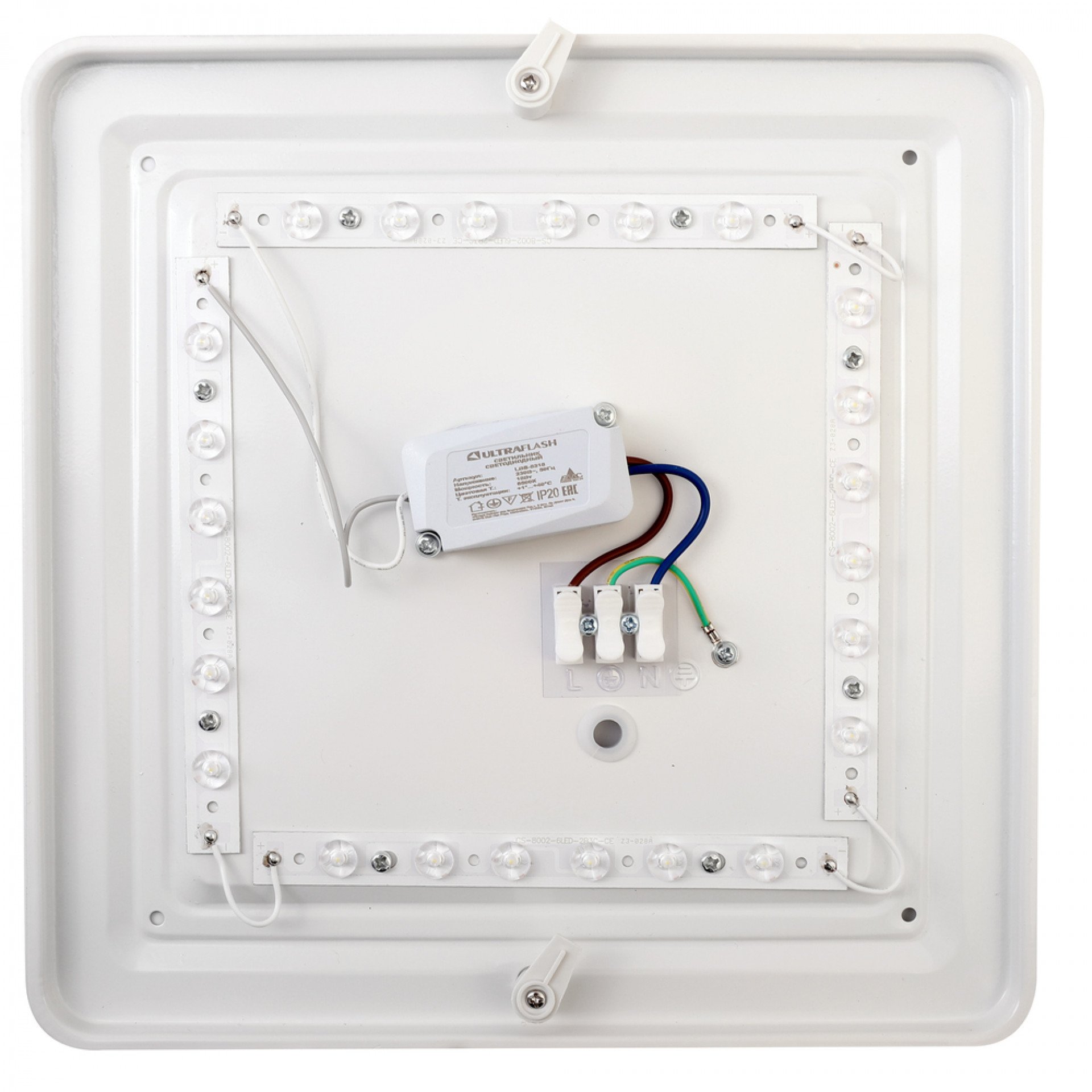 Светильник светодиодный настенно-потолочный с белым матовым плафоном квадратной формы, с равномерным распределением света. Подходит для жилых и коммеряческих помещений. Основные характеристики: Цвет - белый, источник света - встроенные светодиоды, мощность 18Вт, световой поток 1300Лм, цветовая температура 6500К, индекс цветопередачи (CRI) 80+, материал основания светильника - металл, материал рассеивателя – пластик. Габариты светильника 275х275х55мм. Гарантия 12 месяцев.
