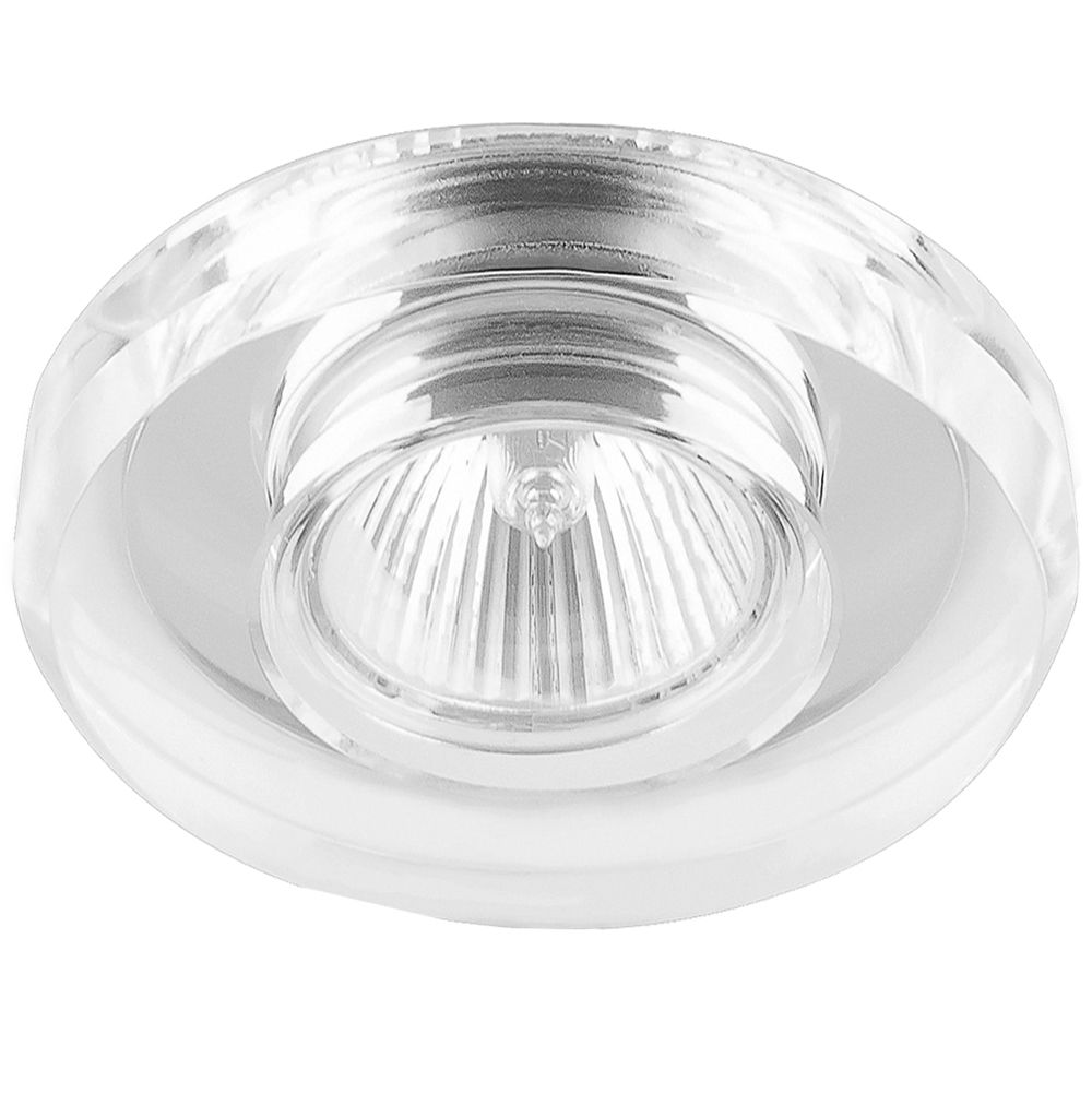 Светильник потолочный встраиваемый (ИВО) FERON DL8060-2/8060-2, под лампу MR16 G5.3, серебряный хром, круг, 90*90*23 мм, монтажный диаметр 60мм,  корпус стекло, неповоротный.
