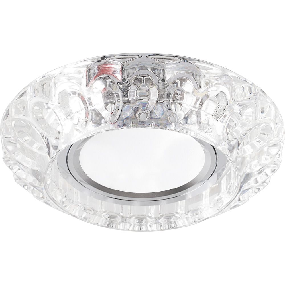Светильник потолочный встраиваемый (ИВО), под лампу с LED подсветкой 15LED*2835 SMD 4000K, MR16 G5.3, прозрачный хром, круг, 100*100*30 мм, монтажный диаметр 60мм, корпус стекло, неповоротный